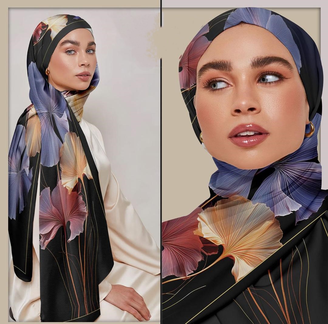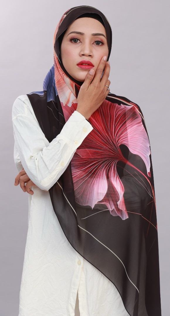 Our Fatina Couture printed chiffon from CAIRO-EGYPT gives you a cool, refreshing feel of sun protection & greater breathability. This shawl-printed chiffon is a remarkable, timeless classic piece that can be worn on any occasion. Our Fatina Couture printed chiffon shawl comes in a larger size that gives you more coverage, making it an ideal selection for those seeking a modest yet graceful yet fashionable look.