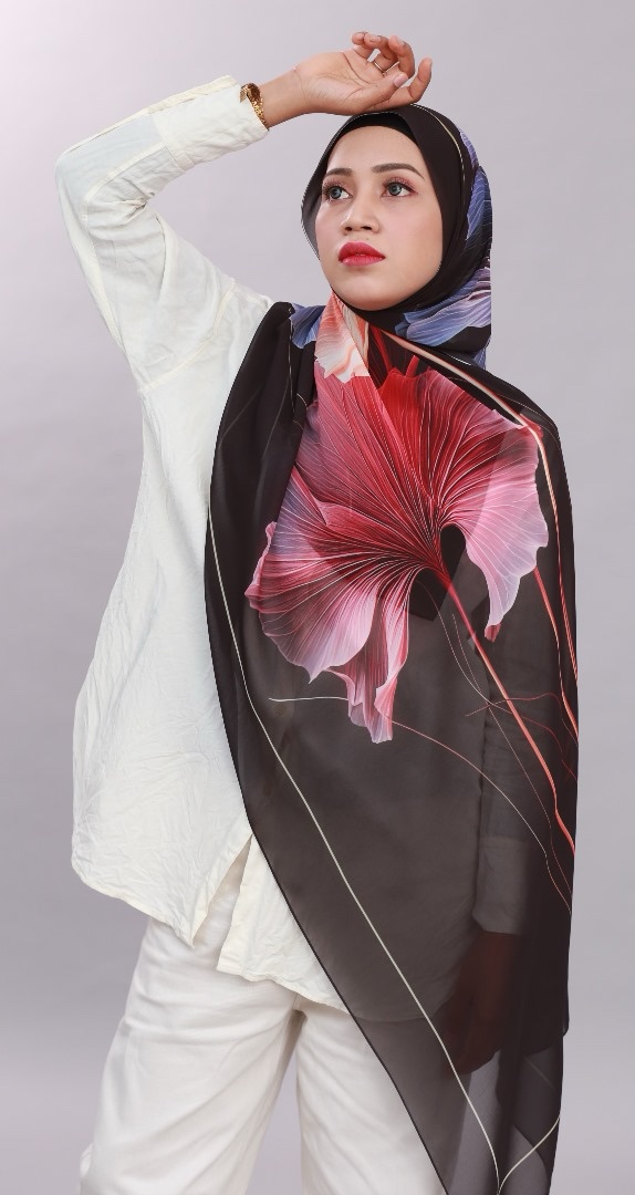 Our Fatina Couture printed sophisticated, stylish, and trendy chiffon shawl’s collection is your definite prime choice for a lightweight, breathable, and yet elegant hijab. Made from our high-quality, selected chiffon fabric, these shawls offer you a soft, delicate, flowing drape that adds a touch of sophistication to any of your outfit selections.